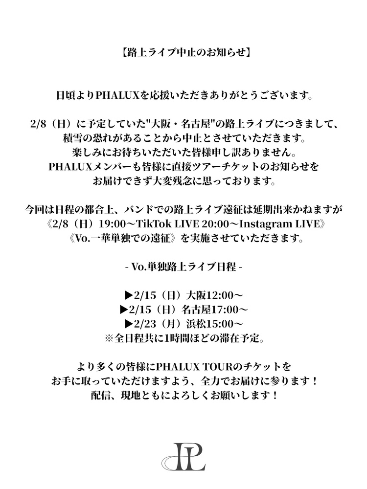 PHALUXメンバーも皆様に直接ツアーチケットのお知らせを